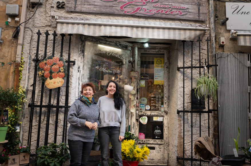 Sylvie and Paola, mother-and-daughter florists at “Une Fleur dans mon Grenier”, and a Pickup collection point in Saint-Maximin-la-Sainte-Beaume (83) — pictured at the Pickup collection point at the Terranimo pet shop in St-Maximin © Pickup / Lorian Augier de Moussac & Ooshot