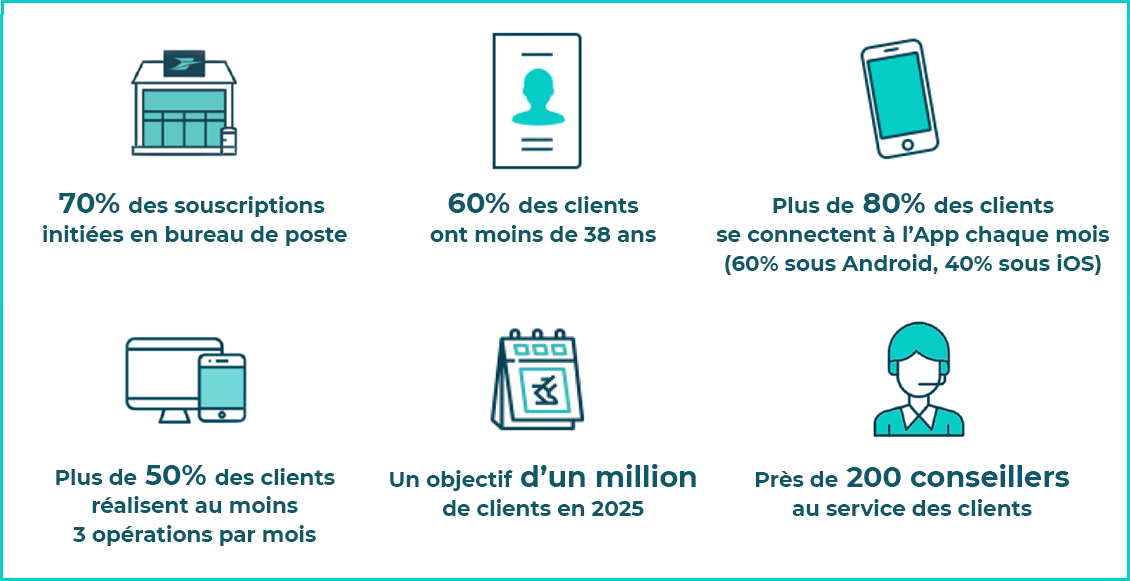 Une première étape en bureau de poste avant de passer au tout-numérique : 80% des clients se sont ensuite connecté à l’application chaque mois et 50% d’entre eux ont réalisé au moins 3 opérations bancaires.