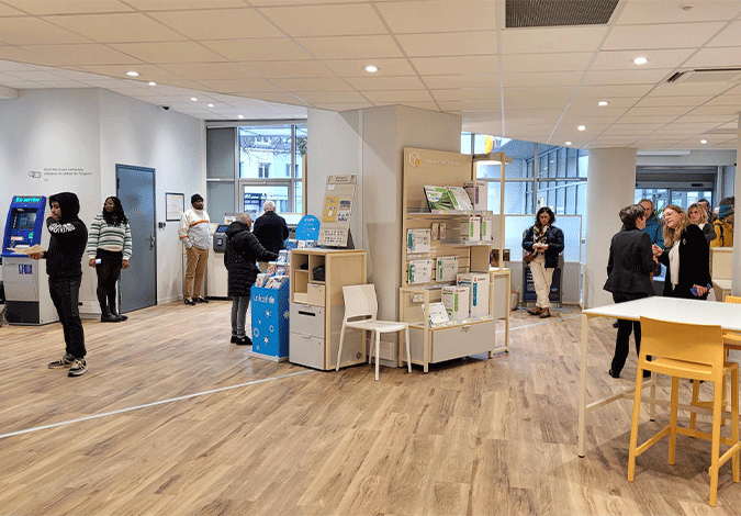 Avec plus de 300 m² d’espace commercial, le bureau de poste rénové de Lorient Merville symbolise une nouvelle génération de bureaux de poste qui s’articule autour de 3 grands univers, facilement identifiables par les clients : l’espace de vente grand public, l’espace conseil bancaire et l’espace conseil pour les professionnels.