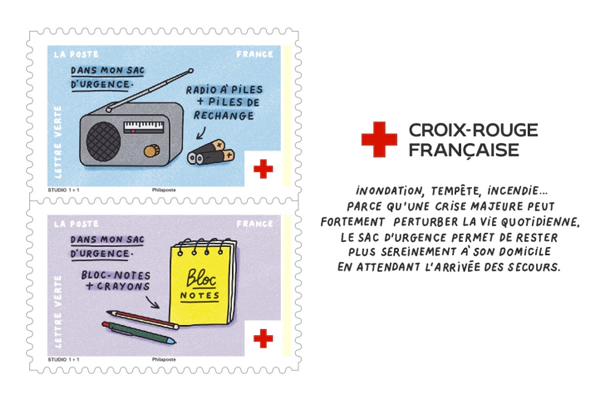 La Poste et la Croix‑Rouge émettent un carnet de 10 timbres‑poste dédié au sac d’urgence