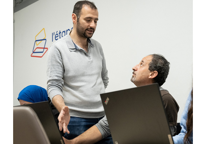 Équipé d’ordinateur et d’écran, l’Étape Numérique est mise à disposition gratuitement pour le conseiller numérique et toutes les associations qui souhaitent y dispenser ateliers et formations au numérique.