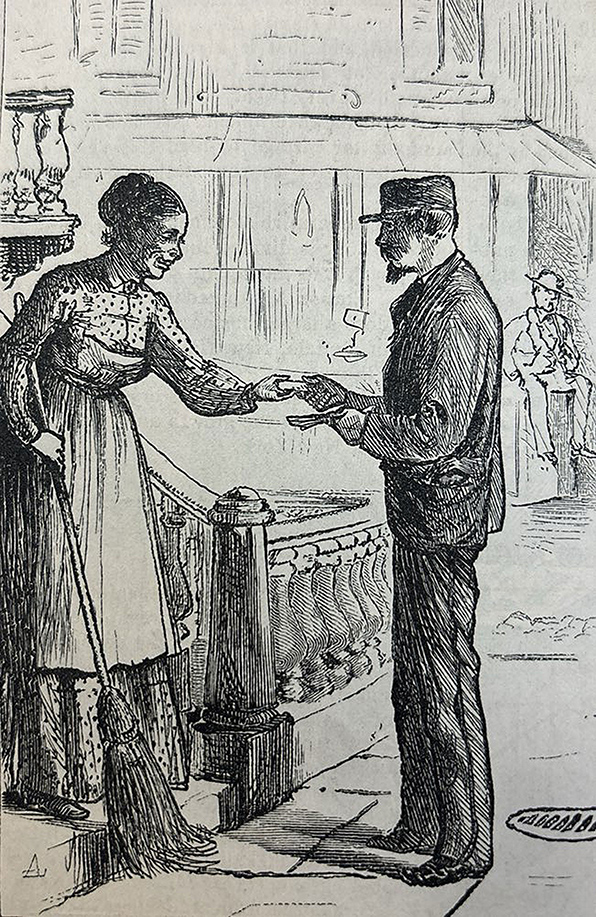 À l’époque de la Poste aux chevaux, le "courrier" désigne le postier qui transporte les sacs de dépêches regroupant les correspondances. À la fin du XIXe siècle, le terme s’étend pour inclure tout le fret postal « plat » léger de moins de 1 kg, englobant lettres ordinaires, recommandées, mandats, cartes postales, journaux, et même les publicités adressées.