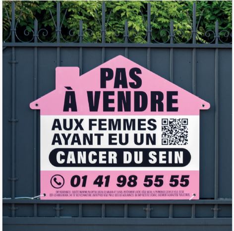 Pour interpeller les femmes ayant eu un cancer du sein, leurs proches et le grand public, CNP Assurances a décidé de détourner les pancartes et les annonces immobilières pour diffuser un message aussi frappant que la réalité : “Pas à vendre aux femmes ayant eu un cancer du sein”. Ces fausses annonces - imaginées par l’agence The Good Company - renverront vers un numéro de téléphone dédié et un QR code pour accéder à toutes les informations pédagogiques sur le sujet de l’assurance emprunteur.
