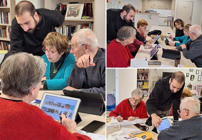 Les ateliers ont débuté en septembre 2025. À la résidence, Harlay de Sancy à Maule (78), ces rencontres hebdomadaires suscitent un véritable enthousiasme. Les participants peuvent y découvrir progressivement l’usage de la tablette, apprendre à communiquer avec leurs proches ou encore à gérer certaines démarches en ligne. Les ateliers contribuent également à stimuler leurs capacités cognitives et à créer du lien social.