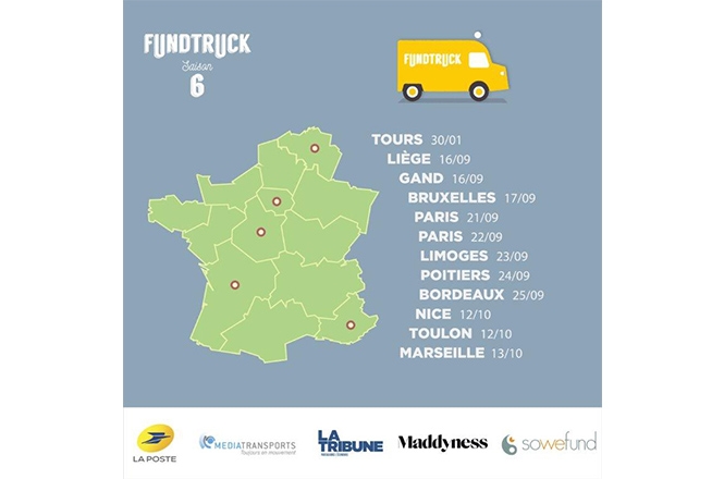 Après deux étapes exceptionnelles - à Tours en janvier 2020 puis en Belgique - le Fundtruck a entamé son tour de France. L’objectif : promouvoir l’entrepreneuriat et démocratiser l’investissement en faisant monter de jeunes entrepreneurs à bord d’un « food truck » à chaque halte. À son bord, des entrepreneurs en recherche de financement présentent, lors d’un pitch de quelques minutes, leur projet. Devant eux, des entrepreneurs en devenir, des curieux, des startuppers mais aussi des fonds d’investissement et des acteurs clés des écosystèmes régionaux de l’innovation : investisseurs, entrepreneurs à succès, représentants locaux, médias…