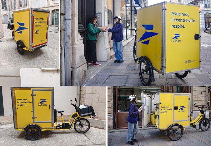 Soucieuse des modes de transports innovants, plus adaptés à l’environnement et aux futures réglementations, La Poste adopte le vélo cargo en Bourgogne-Franche-Comté pour sillonner et distribuer les colis des centres-villes des grandes et aussi désormais des moyennes agglomérations. Avec ce vélo cargo triporteur à assistance électrique, les facteurs sont conquis : ils peuvent circuler sur les pistes cyclables, dans les zones piétonnes et peuvent se garer plus facilement.