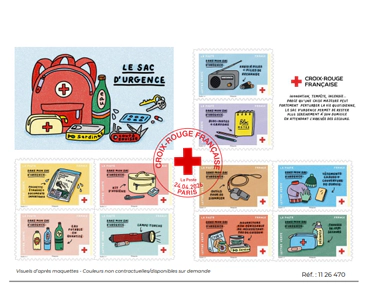 Le 27 avril 2026, La Poste émet un carnet de 10 timbres-poste dédié au sac d’urgence